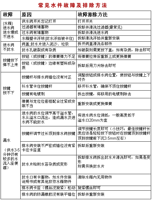 常见水件故障&排除方法